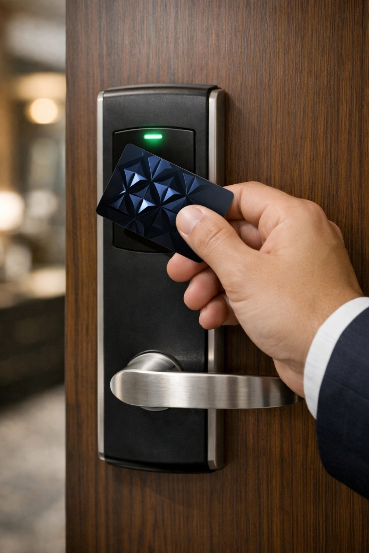- Pääsynhallinta ja turvallisuus: NFC-kortit tai -rannekkeet toimivat sähköisinä avaimina pääsynhallintajärjestelmissä. Niitä voidaan käyttää antamaan valtuutettu pääsy toimistorakennuksiin, hotellihuoneisiin ja esimerkiksi kuntosaleille, joissa nopea kortin tai rannekkeen skannaus avaa oven.